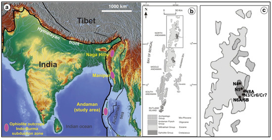 - Bandyopadhyay, D.; Hinsbergen, D.; Plunder, A.; Bandopadhyay, P.; Advokaat, E.; Chattopadhaya, S.; Morishita, T.; Ghosh, B. Andaman Ophiolite: An Overview. In The Andaman Islands and Adjoining Offshore: Geology, Tectonics and Palaeoclimate; Springer: Berlin, Germany, 2020; pp. 1–17. [Google Scholar]