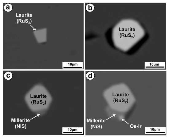 - Brenan, J.M.; Andrews, D. High-temperature stability of Laurite and Ru–Os–Ir alloy and their role in PGE fractionation in mafic magmas. Can. Mineral. 2001, 39, 341–360. [Google Scholar] [CrossRef]