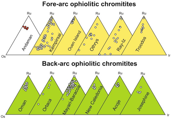 - Ghosh, B.; Pal, T.; Bhattacharya, A.; Das, D. Petrogenetic implications of ophiolitic chromite from Rutland Island, Andaman—A boninitic parentage in supra-subduction setting. Mineral. Petrol. 2009, 96, 59–70. [Google Scholar] [CrossRef]