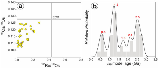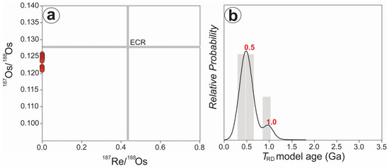- Malitch, K.N. Osmium isotope constraints on contrasting sources and prolonged melting in the Proterozoic upper mantle: Evidence from ophiolitic Ru–Os sulfides and Ru–Os–Ir alloys. Chem. Geol. 2004, 208, 157–173. [Google Scholar] [CrossRef]