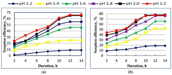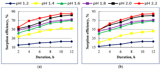 - The best results for the sorption of uranium were obtained on strong-base anionites Ambersep 900 SO4 and Puromet MTA4601PF. The uranium sorption on the strong-base anionite Puromet MTA4601PF increases with the increase of pH and reaches 90%, which is 13% more than on weak base anionites. The results of the investigation showed that the best results were achieved at a pH of 2.2 and a duration of 12 h.