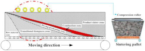- Wang, Y.-Z.; Liu, Z.; Zhang, J. Characteristics of combustion zone and evolution of mineral phases along bed height in ore sintering. Int. J. Miner. Met. Mater. 2017, 24, 1087–1095. [Google Scholar] [CrossRef][Green Version]