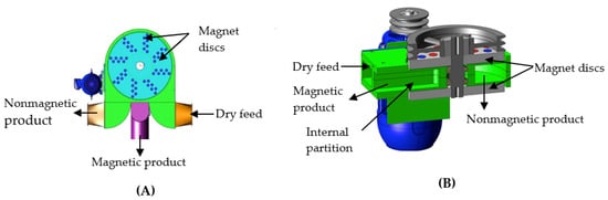- Svoboda, J. Review of Magnetic Separator. In Magnetic Techniques for the Treatment of Materials; Springer: Dordrecht, The Netherlands, 2004; p. 96. [Google Scholar] [CrossRef]