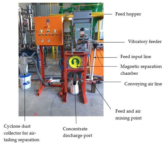 - Baawuah, E.; Kelsey, C.; Addai-Mensah, J.; Skinner, W. Assessing the performance of a novel pneumatic magnetic separator for the beneficiation of magnetite ore. Miner. Eng. 2020, 156, 106483. [Google Scholar] [CrossRef]