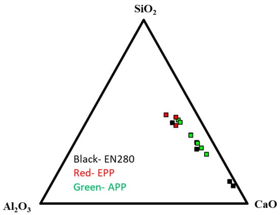 Comparing the self-cementing properties of all studied ashes, the performance of the APP-EPA and APP-TA was found to have better properties. Between these two samples of ashes, APP-EPA is shown to have optimal suitability. This is tentatively explained by a higher BET SSA and a considerable content of lime and portlandite (~14–23%), Ca-Mg silicates (C2S) and C4AF (~15–22%) that can participate in hydraulic or pozzolanic reactions. Therefore, APP-EPAs and EPP-EPAs have potential self-cementing properties.