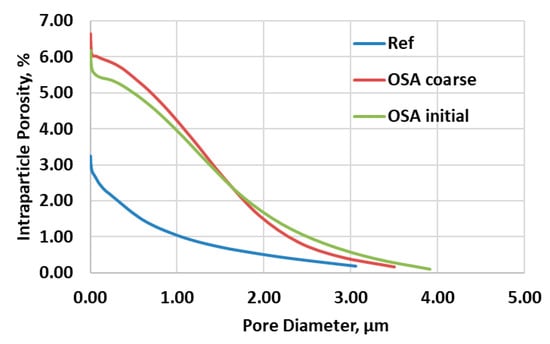 Intraparticle porosity as a function of pore diameter size.