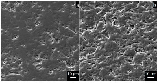 The SEM images of the brick samples, (a) Reference sample, (b) EPP-EPA (coarse).