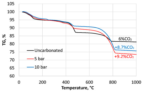 The obtained results from compressive strength measurements were used as main parameter to evaluate the performance of the carbonated monoliths. The CO2 uptake during carbonation was determined by thermogravimetric analysis (TGA). Additionally, XRD measurements were made to follow the formation of new phases during the carbonation process.