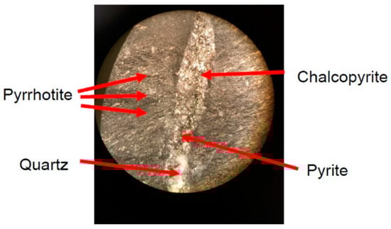 Figure 18 shows a picture of the quartz veining and associated sulfides minerals (pyrrhotite, pyrite, and chalcopyrite). The pyrite and chalcopyrite mineralization is responsible for the observed IP effect. The preliminary analysis of drilling results also shows quartz veins filled with the minerals, like pyrrhotite, pyrite, and chalcopyrite, with the presence of gold and silver. This points to a possible epithermal gold and silver vein type deposit. This is further encouraged by the proximity to the Mahd Ahd Dahab and Jabal Sayid deposits, aka the “Cradle of the Gold”. In the Mahd Ahd Dahab deposit, the polymetallic mineralization of chalcopyrite, sphalerite, galena, and gold and silver tellurides, occurs in the quartz veins as well. More drilling and rock sample analysis, however, will be required for this prospect area to make an estimate of the economical potential of the discovery.