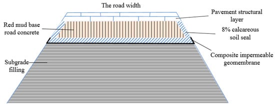 A company in China’s Shandong province has realized the world’s first application of Bayer RM in the construction of actual highway engineering, and successfully applied it to the expressway. In 2018, 25,000 t of RM was used on the subgrade of the expressway and the construction diagram of RM pavement has shown in Figure 7. The RM based concrete was built through mixing and compacting, which was based on RM and RM modifier in a ratio of 92:8. RM modifier was made based on phosphorus gypsum and cement as main material, also some heavy metal reducing agent, complexing agent and curing modification materials were added. The RM modifier had a good solidification and stability effect on the pollutants in the original RM, and effectively reduced the dissolution of pollutants, making RM concrete meet the requirements of environmental protection. The 7 d compressive strength reached 3.1 MPa, fully meeting the requirement of the highway. The subgrade has been successfully applied to the highway, and the company’s achievements have been successfully used in many RM highway projects, expansion projects and the national highway G309 construction project in China. Modified RM could be used to replace ordinary lime soil and cement, and practical utilization showed that the price was 10–30% cheaper [87].
