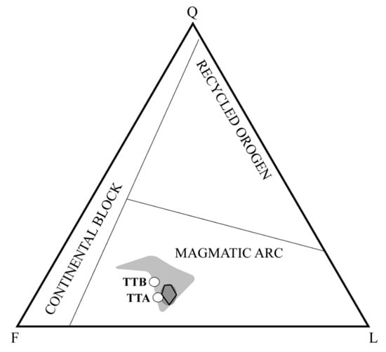 - Dickinson, W.R.; Beard, L.S.; Brakenridge, G.R.; Erjavec, J.L.; Ferguson, R.C.; Inman, K.F.; Knepp, R.A.; Lindberg, F.A.; Ryberg, P.T. Provenance of North American Phanerozoic sandstones in relation to tectonic setting. Geol. Soc. Am. Bull. 1983, 94, 222–235. [Google Scholar] [CrossRef]