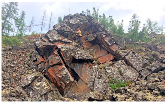Intrusions of the Sette-Daban event are represented by dolerite sills and minor dikes. Lengths of the sills range from hundreds of meters to tens of kilometers, with thicknesses ranging from 2–3 m to 120–170 m (Figure 2).
