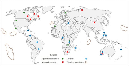 Global distribution of different major Co deposits (redrawn from Slack et al., 2017 []).