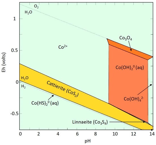 Eh–pH diagram showing the dominant Co species (redrawn from Krupka and Serne, 2002 []).