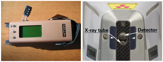 - Laperche, V. Evaluation des Performances du Spectromètre Portable de Fluorescence X Niton XL723S (au Laboratoire et sur le Terrain). BRGM Report RP-53377-FR. 2005, 72p. Available online: http://infoterre.brgm.fr/rapports/RP-53377-FR.pdf (accessed on 23 December 2020).