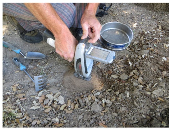 - Padilla, J.T.; Hormes, J.; Selim, H.M. Use of portable XRF: Effect of thickness and antecedent moisture of soils on measured concentration of trace elements. Geoderma 2019, 337, 143–149. [Google Scholar] [CrossRef]