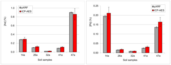 - Radu, T.; Diamond, D. Comparison of soil pollution concentrations determined using AAS and portable XRF techniques. J. Hazard. Mater. 2009, 171, 1168–1171. [Google Scholar] [CrossRef]