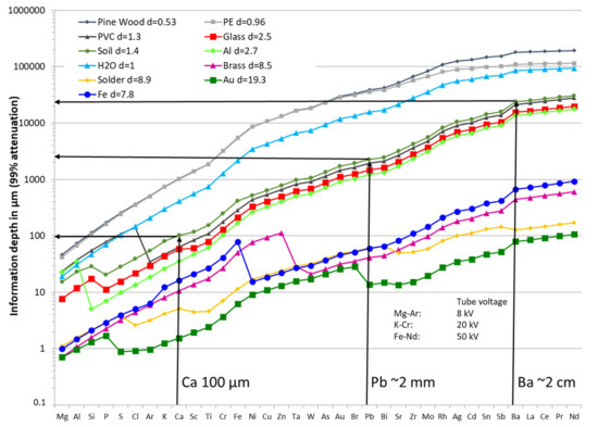 - Markowicz, A.A. Quantification and Correction Procedures. In IAEA, In Situ Applications of X Ray Fluorescence Techniques; IAEA-TECDOC-1456 (ISBN:92-0-107105-1). 2005. Available online: http://www-pub.iaea.org/books/IAEABooks/7212/In-Situ-Applications-of-X-Ray-Fluorescence-Techniques (accessed on 15 September 2014).