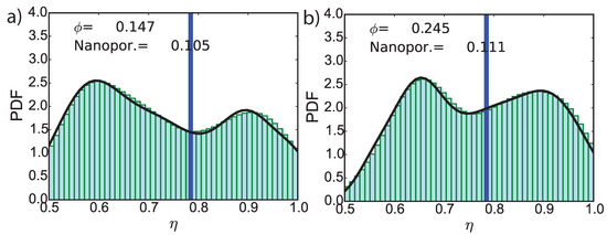 We validate our theoretical model, at Level I, using the nanoindentation tests conducted on the unaltered Mt. Simon sandstone sample, 6925-U. The resulting distribution of indentation modulus and indentation hardness, , was analyzed using statistical deconvolution to identify mechanical phases (see Figure A1 and Figure A2). Afterward, the feldspar and microporous phases were isolated. Additional details regarding the statistical deconvolution analysis are provided in Appendix A.