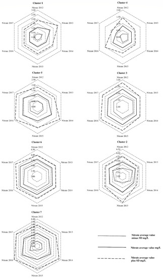 3.2. Nitrate Changes for Each Cluster