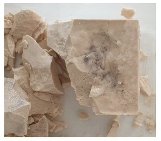Photo showing the structural deterioration of the MW/MK 0.3 AAM after subjection to 15 freeze–thaw cycles.