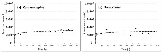 Sorption of carbamazepine (a) and paracetamol (b) onto saponite clay at 200 g/L.