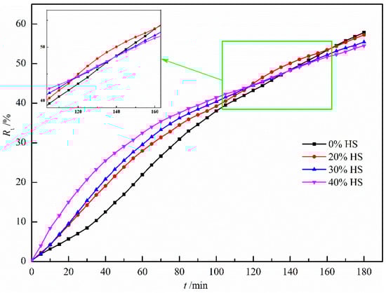 3.3. Effect of Sea Sand Ore Dosage on the Reduction Degree of Oxidized Pellets