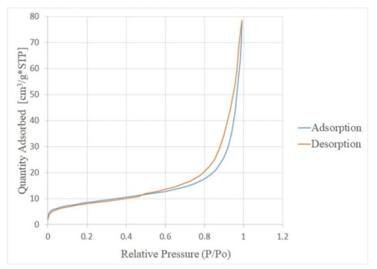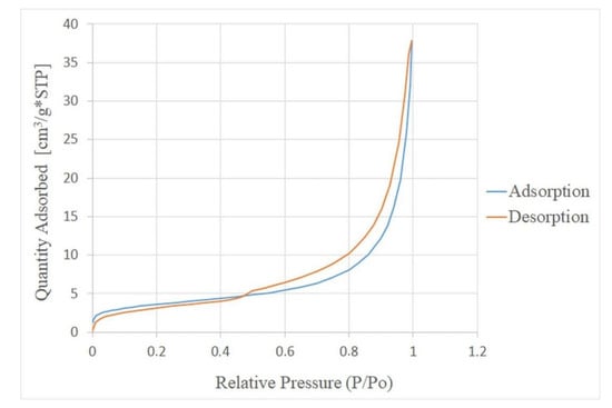 With respect to the pore size distribution, both zeolitic powders can be classified as meso- and microporous, which make them the prospective raw materials for the organic and petroleum compounds adsorption [75]. The textural analysis showed relatively low micropore volume in the studied samples. It is about 3.4% and 2.5% for the Ukrainian and Slovakian materials, respectively. The samples exhibit a similar type of isotherm (Figure 15 and Figure 16), which is type II with some minimal features of type IV, and the hysteresis loop of type H3 according to the IUPAC classification [76]. The observed hysteresis loop corresponds to disordered slit-shaped pores, and it is typical for the aluminosilicates.