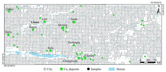 Copper deposits are the most important potential mineral resource in this study area, and several significant copper deposits have been discovered, such as Qulong and Jiama. Therefore, the Cu element data were selected to verify the feasibility of multiple-point geostatistical simulation by evaluating the uncertainty of Cu anomalies and identifying the mineral resource prospective targets.