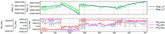 A LAG test flight is used to determine the magnetic field variations in opposite flight directions and to reduce the offset effect caused by the installation distance between the magnetometer sensor and GPS antenna (Figure 6).