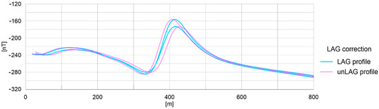 LAG test flight profiles were plotted on the same X and Y axes. The anomaly centres are aligned after a 0.5 s LAG correction was applied.