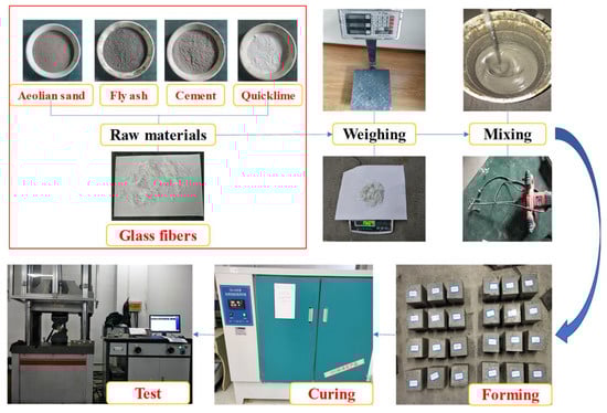 - The physical properties of the glass fiber-doped shotcrete material were tested, including the particle size and EDS analyses of aeolian sand and fly ash raw materials. The main chemical compositions of cement and fly ash were determined.
