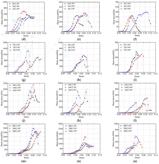 | Specimen Designation | Curing Age, Days | Shear Angle, Degrees | Shear Strength, kPa | Average Shear Strength, kPa | Standard Deviation, % |