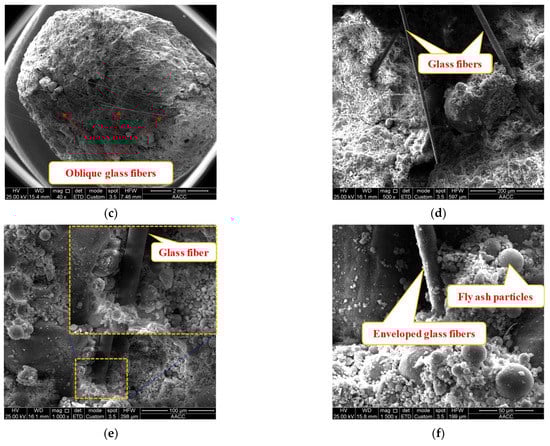 4.2. Mechanism of Doped Glass Fibers’ Effect on the Mechanical Performance of Shotcrete Specimens