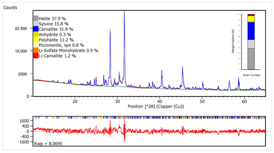 Example of a full-pattern Rietveld quantification of a lithium ore from a brine.