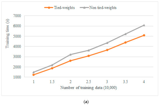 Training time comparison with respect to training number of tied weights and non-tied weights.
