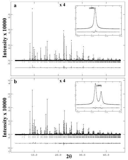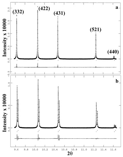 - Larson, A.C.; Von Dreele, R.B. General Structure Analysis System (GSAS). Los Alamos National Laboratory Report; LAUR 86-748; LAUR: Santa Fe, NM, USA, 2000. [Google Scholar]