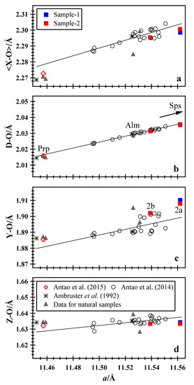 - Antao, S.M.; Suarez Nieto, N.S.; Cruickshank, L.A.; Gwanmesia, G.D. Crystal structure refinements of pyrope-majorite solid solutions between Prp100Mj0 and Prp17Mj83. Adv. X-Ray Anal. 2015, 59, 192–211. [Google Scholar]