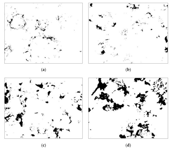 Gray binary image of S-3 sampling points (300X): (a) First mining step; (b) Second mining step; (c) Third mining step; (d) Fourth mining step.