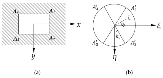 Assuming that the surrounding rock of the rectangular roadway is regarded as a homogeneous and isotropic continuous medium, the conformal variation can be used to map the outside of a rectangular roadway to the unit circle through the mapping function Z = ω(ξ), as shown in Figure 12. Based on the deformation characteristics of rock and the theory of elasticity, the mechanical constitutive equation of the volume deformation of the roadway-surrounding rock is determined, with the following partial tensor form [49]: