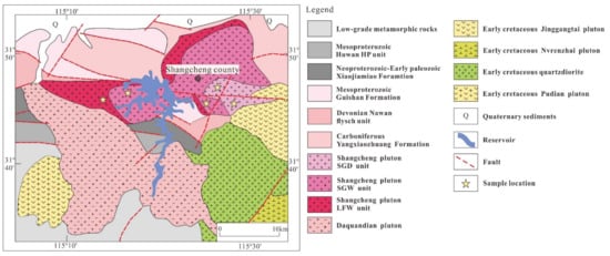 Simplified geological map of the Shangcheng pluton (modified after [38]).