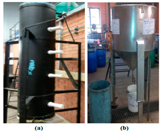 The drainage characteristics of a coal stockpile are primarily influenced by the coal type, particle size, existence of fines layers, the extent of compaction, and the height of the stockpile. To investigate these factors, two different drainage columns (0.5 and 2.0 m high) were used (Figure 3). The columns had an interior diameter of 0.38 m and were fitted with a screen at the bottom that supported the packed coal bed. Coal samples were loaded into the columns according to the conditions listed in Table 4. For all runs, 20 L of water was added in one step to the top of the columns to percolate through the coal bed to be collected at the bottom.