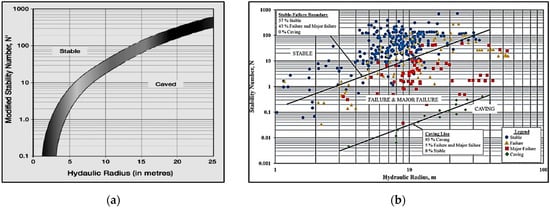 - Mawdesley, C.; Trueman, R.; Whiten, W. Extending the Mathews Stability Graph for Open-Stope Design; EBSCO Publishing: Ipswich, MA, USA, 2001. [Google Scholar]