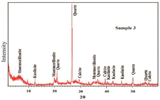 The minerals identified by X-ray diffraction in the El Sebaiya black shale samples are quartz (50%), calcite (10%), and clay minerals (40%). Clay minerals are composed of kaolinite (25%) and montmorillonite (15%) (Figure 3). The crystallinity characters of the investigated clay minerals, as reflected from the shape of their diffraction peaks, indicate moderate to high status of crystallinity. Most of the analyzed samples show moderately to well-developed sharp diffraction peaks. Montmorillonite generally has a marked moderate crystallinity. On the other hand, kaolinite exhibits moderate to high degree of crystallinity. The results obtained from the SEM investigation support those recorded from XRD patterns (Figure 4).