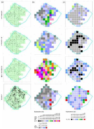 The results of the assessment of the accuracy of the prediction of metal abundance, presented in Table 5, indicate that the random error of the prediction of Ni abundance (MAE: 43–51%) is clearly lower than the analogous error of the prediction of Pb abundance (MAE: 66–69%).