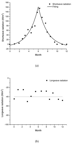 Yearly variation of net radiation energy for both shortwave and longwave [