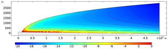 Melting line in the ice sheet after 1000 years of equilibrium.