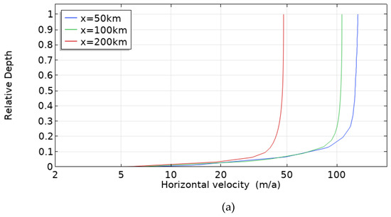 11]. Our modeling shows that Q = 100 kJ/mol gives the most consistent results with respect to the measured horizontal ice velocity. However, a nonlinear equation of the activation energy would better reflect the physics of the rheology of ice.