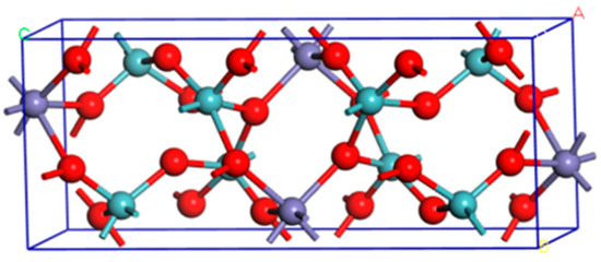 The optimized bulk FeNb2O6 is shown in Figure 2. It could be seen from Figure 2 that the chemical bonds in the crystal structure of FeNb2O6 were basically Fe–O bonds and Nb–O bonds, and there was no direct formation of chemical bonds between Fe and Nb.