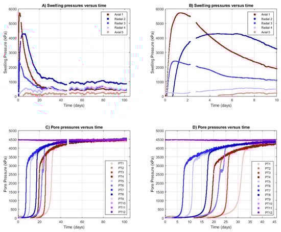 - Martin, P.L.; Barcala, J.M.; Huertas, F. Large-scale and long-term coupled thermo-hydro-mechanic experiments with bentonite: The febex mock-up test. J. Iber. Geol. 2006, 32, 259–282. [Google Scholar]